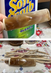 To address the staining, bristled and regular pipe cleaners are used using isopropyl 99% alcohol. Soft Scrub is also used with its bleach base. A lot of scrubbing made significant progress with the stem’s airway.