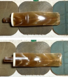 The sanding transitions from sanding to polishing with micromesh pads. Between each pad, Obsidian Oil is applied to the stem. First, pads 1500, 1800 and 2400 are used.