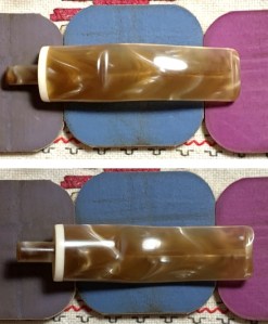 Turning next to the stem, the airway is stained and darker than the surrounding acrylic marbling.
