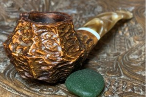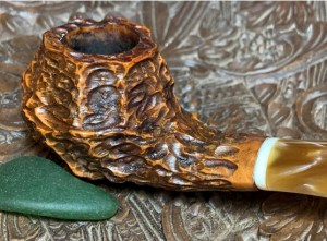 Even though this Italian made pipe is unbranded, the rusticated Seahorse finish is eye-catching. The Volcano bowl rests nicely in the palm and the honey marmalade acrylic stem complements nicely with its slight bend. Aaron commissioned the pipe and will have the first opportunity to claim him from the Pipe Steward Store. A portion of the proceeds of the pipes restored benefit the Daughters of Bulgaria – now called, Spring of Hope, helping women and girls who have been trafficked and sexually exploited. Thanks for joining me!