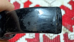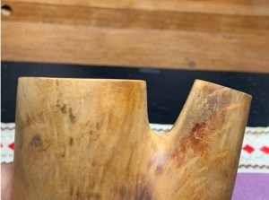 With the patching completed on the stummel surface, attention is switched to the rim. The rim’s internal circumference is out of round and blemishes from the wear and tear this pipe has been through.