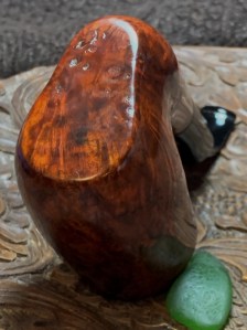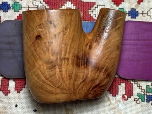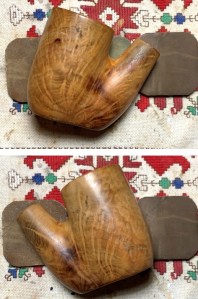 Next, the stummel is sponge sanded with a coarse, medium, light and fine sponge. There is a bit of old finish left over but I’m not concerned about this. It is close to the nomenclature which I’ve been guarding. The grain came out in the sanding, but the block still has interesting coloring, but a whole lot better than when we began.