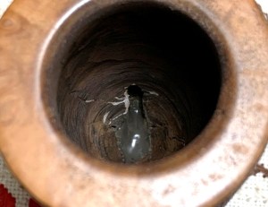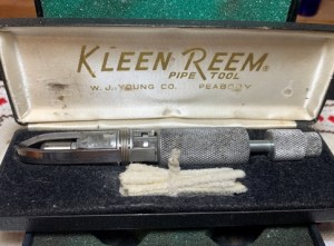 Using the Pipnet Reaming Kit I go to work. With the chamber at the rim measuring 1 1/8 inches across, the 4 blades in the Kit quickly run their course – the chamber is broader than the largest blade. The chamber balloons out some as you move down so that the blades were not reaching across the chamber. I ended up scraping the edge of the chamber using the larger blade to begin removing the cake.