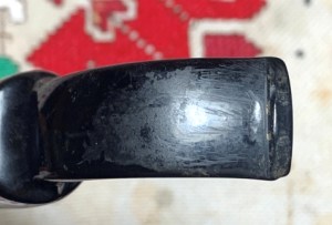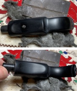 While the stummel is to the side, the next mini project is to refresh the overlapped, SP stem logo. The pictures of the Spitfire line show a red lettering. The picture below shows the remnants of red. We’ll see what we can do.