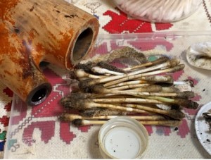 A huge pile of cake was taken out of the chamber and the full set of tools needed to do it.