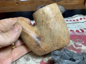 After a while, work continues with the stummel. There are some pits that need to be filled, but there are also some configurations in the briar that appear to be rustication marks. These add to the character of the Lorenzo Spitfire, so I’ll leave them as they are.