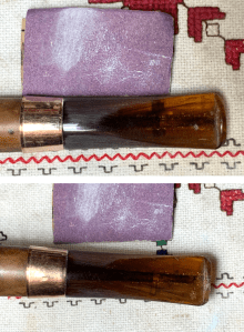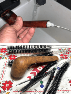 Cleaning continues with the internals with cotton buds and pipe cleaners moistened with isopropyl 99% alcohol. The buds were only useful to clean the mortise, and the cleaners cleaned the shank’s expanse. What I discovered quickly was that the internals were pretty much clean already. Moving on!