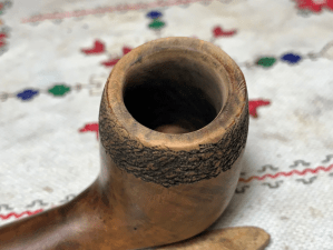 The rim has charring stain on it and the brass brush helps to address this. The great thing about brass brushes is that they are softer and while they help with more aggressive cleaning, they are not too invasive to the briar.