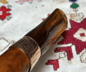 The nomenclature is found on the underside of the Canadian shank – a fancy arched script: Comeaux. Beneath Comeaux is what appears to be the symbol for ‘The Second’ name bearer from his father. To the right of this the COM: USA. To the far right is stamped 3-00. At first, I thought this was a shape number, but after looking at several Comeaux pipes once for sale (they’re all sold!) on Smokingpipes.com, I discovered that this was a dating stamp. 3-00 or March 2000.