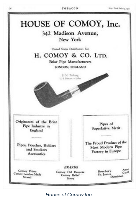 Jumping ahead a few years after the family crossed over to the UK, the history continues with the creation of H. Comoy & Co. Ltd: