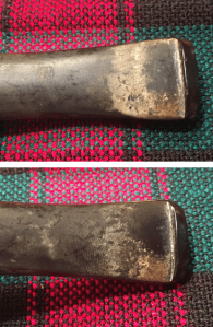 The heel has also seen better days. The entire heel and running down the shank is rough briar – nicks and dents. It looks like the former steward knocked the stummel to loosen the ashes??