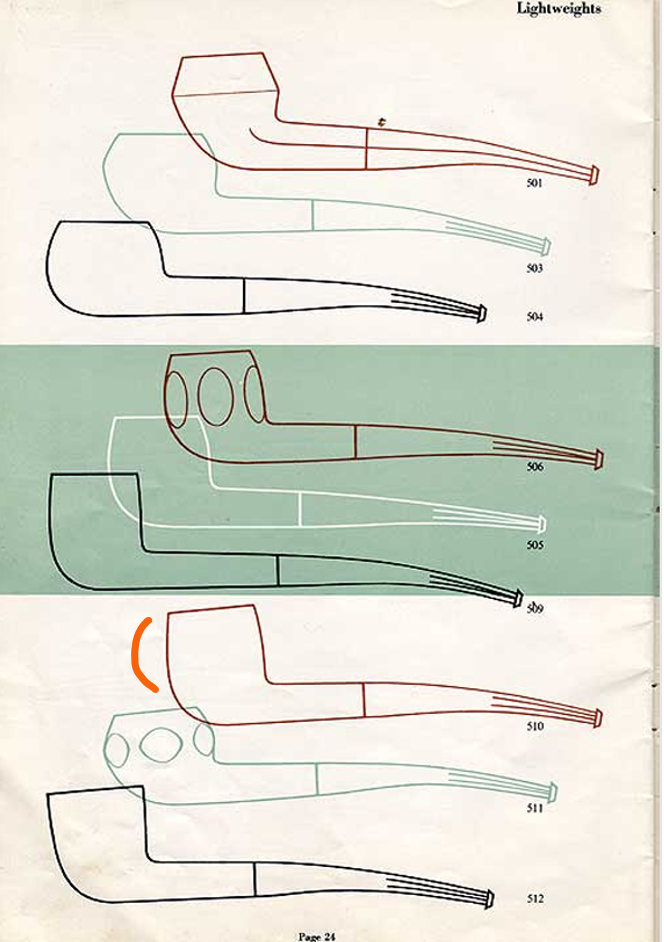 Next, turning attention to the shape number 510, I discovered that the charts and descriptions included in Pipedia’s Shape Number Chart article (Comoy’s Shape Number Chart – Pipedia) revealed no shape 510. One chart skipped from 509 (Billiard, 1/8 bent, Lightweight) to 511 (Prince, 1/8 bent, Lightweight).