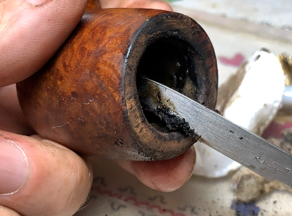 The rim is in rough shape. The sharp edge of the Savinelli Fitsall Tool works well scraping the black crust off the rim.