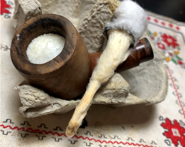 To start the restoration, the stem airway is cleaned with pipe cleaners and isopropyl 99% alcohol.