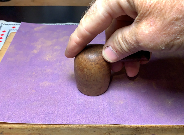 With the stummel inverted on 220 paper, the stummel is rotated over the paper.
