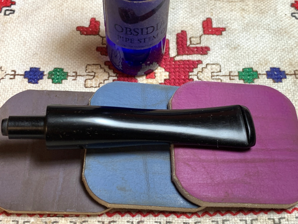 The next step in the sanding process is to use micromesh pads. Between each pad the stem is wiped with Obsidian Oil which helps condition the stem and protect against oxidation. Micromesh pads are used: 1500 to 2400, 3200 to 4000, and 6000 to 12000.