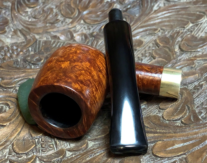 This information was invaluable by providing explanations for each question dogging me about this Comoy’s. Based on this information from Steve, there’s no reason to doubt that the stem is a factory stem and not a replacement. What is interesting too, is that the D on the stem’s underside most likely is a mark indicating information for a stem replacement and the possibility that the stem over the years could have lost its subtle 1/8 bend. The P on the shape still is a bit foggy but all the parts of the pipe, including the band, are Comoy’s factory products. Nice! and thank you Steve for your help!