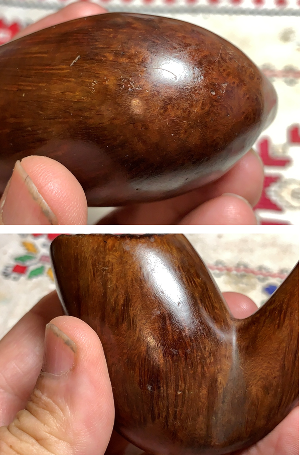 The right side of the stummel has also horizontal scratches fighting with the vertical grain.