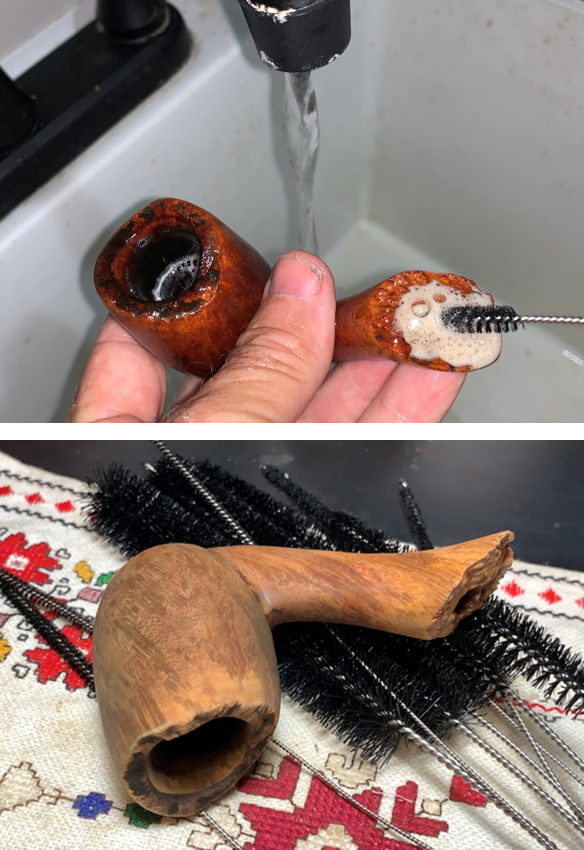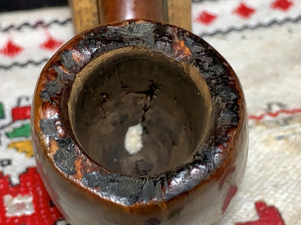 The time has past for the chamber to fully cure. Looking at the stummel after the cleaning shows that the plateau’s black trim has all but disappeared.