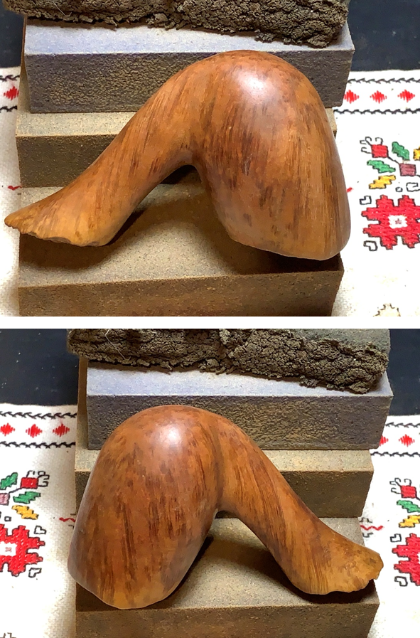 The briar is down to the natural presentation with no finish. There are rough spots on the left side of the stummel that need sanding.