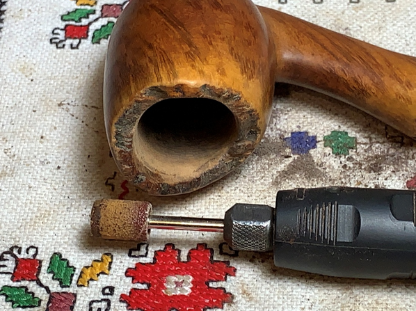 With the stem now on the sideline, focus is on cleaning the Freehand stummel starting with reaming the chamber. A fresh start picture marks the progress.