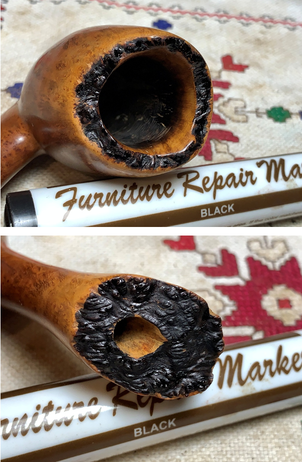 The plateaus also need attention. Both the bowl’s plateau and the shank’s plateau originally had a rough black trim which eroded and disappeared.
