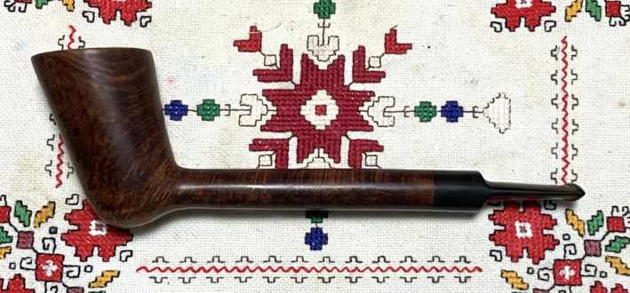 A Lovat shape is in the Canadian family of pipes and its main characteristics are a long, round shank with a saddle stem. The interesting part of the shape of the pipe now on the table is instead of having a Billiard bowl, a Canadian characteristic, the bowl is canted forward reminiscent of a Dublin shape. Bill Burney’s description of a Dublin shape is interesting (Dublin – Pipedia) as he provides the unique characteristics of a conical bowl.