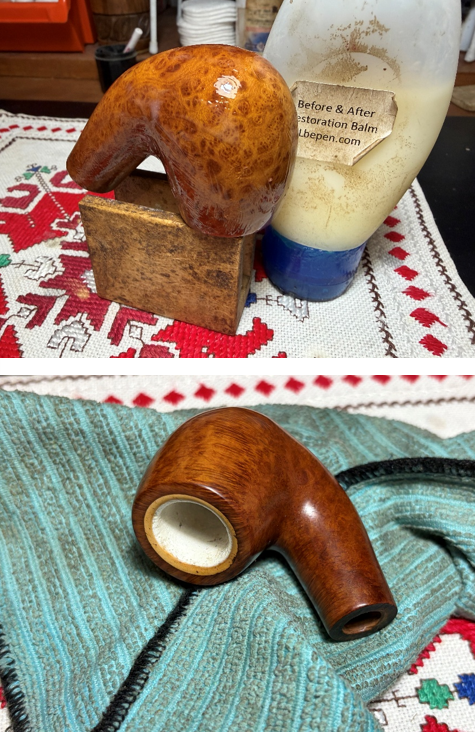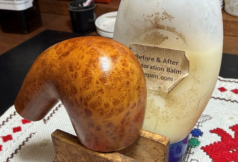 With all the tape and dust, the stummel is buffed with a micromesh cloth and ‘Before & After’ Restoration Balm is again applied to the stummel. After about 10 or so minutes, the excess is wiped off with a microfiber cloth, and the briar is buffed up.