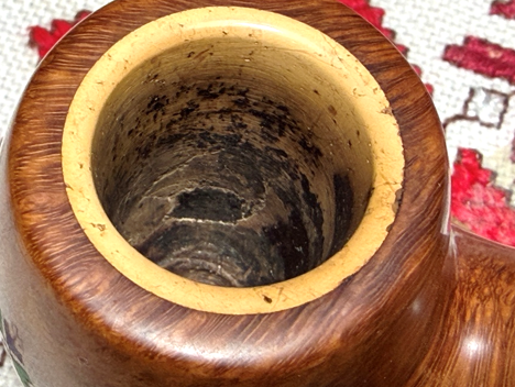 Well, perfection is never part of the equation, but this faux-Meerschaum liner from Troy’s Old Time Recipe is this pipe’s chance to go again. Overall, I’m pleased with the lining. A word for the new steward – do not use a metal pipe tool to scrape the chamber UNLESS care is given not to dig into the new faux-Meer lining. Troy’s practice was to allow a very thin carbon cake to develop.