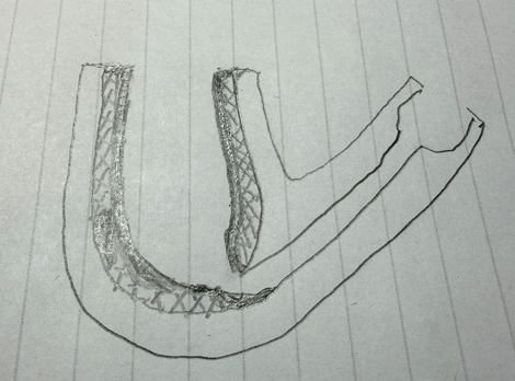 Please forgive my poor drawing ability! What I’ve tried to illustrate are the issues that I’m concerned about created by the questions above. The Meer-lining is represented by the layer with the XXX. On the front lower part, the solid circle represents the damaged area. Here are my concerns: