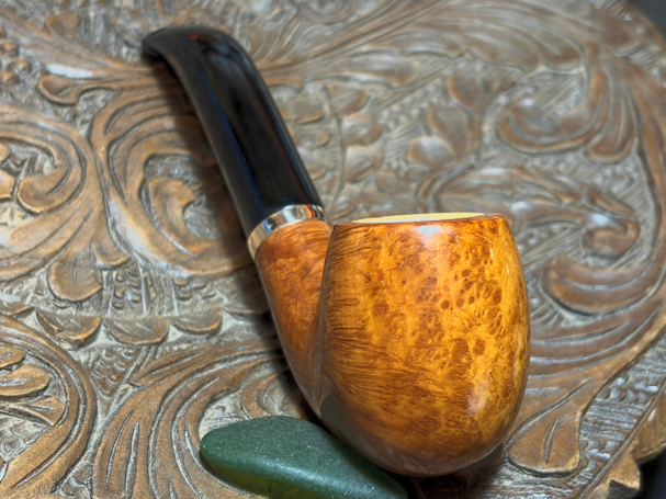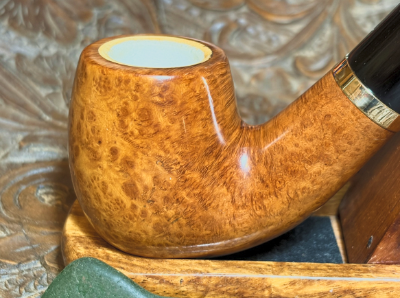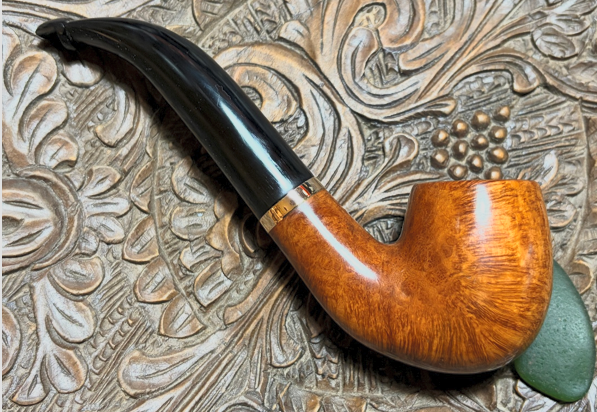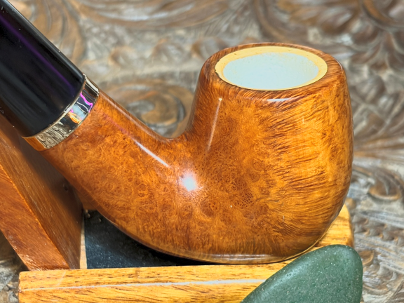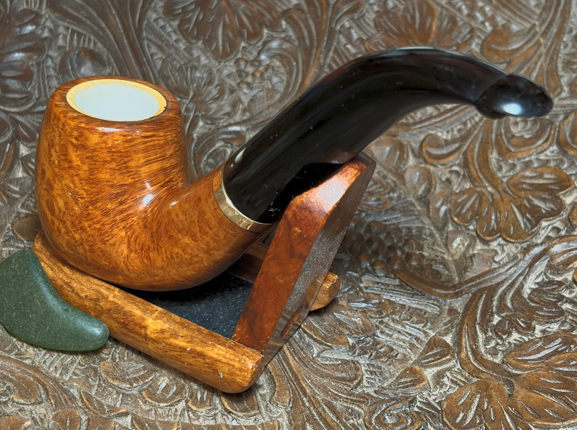 When one starts a restoration project the many twists and turns cannot always be predicted. This Unbranded Meerschaum-lined Bent Billiard has turned out well thanks to Troy’s Old Time Recipe which was a game changer. Otherwise, this beautifully grained pipe would have gone into the bucket. The grain is an eye catching panorama of tight bird’s eye, flame and horizontal grain patterns. The addition of the copper band on the P-lip stem adds a touch of class. Justin commissioned this pipe from Bulgaria as a gift for a special pipeman – either his father or one of 3 friends in his home group. Amazingly, all 4 pipes Justin commissioned will make it for Christmas! A portion of the proceeds of this pipe will help support the work of the Daughters of Bulgaria, now called Spring of Hope. This week is Thanksgiving and I am thankful for friends, family and faith in a God who saves. Happy thanksgiving and thanks for joining me!