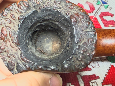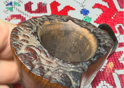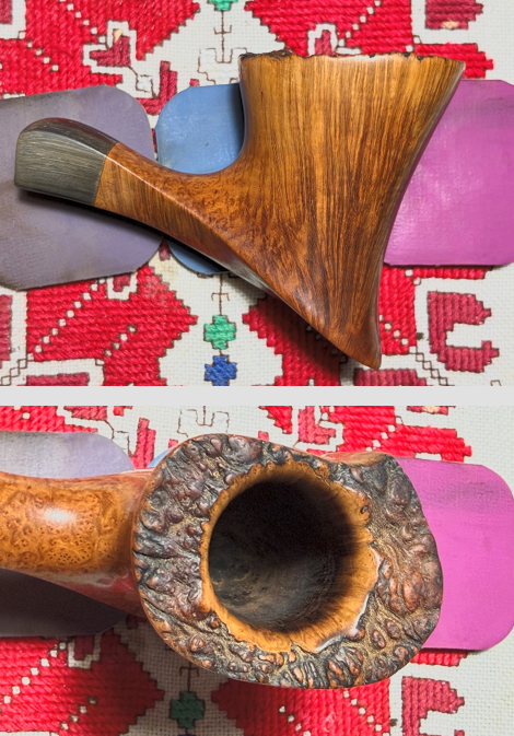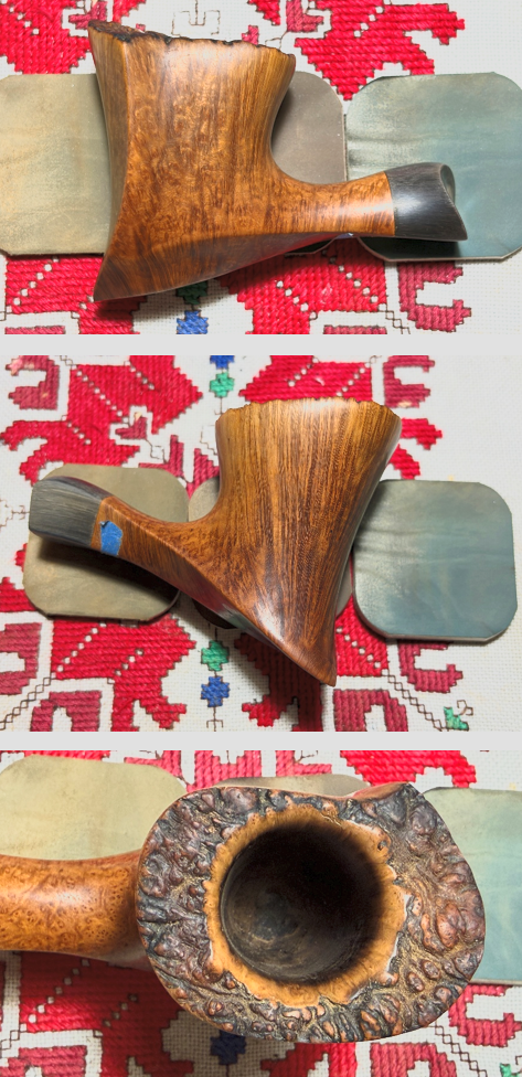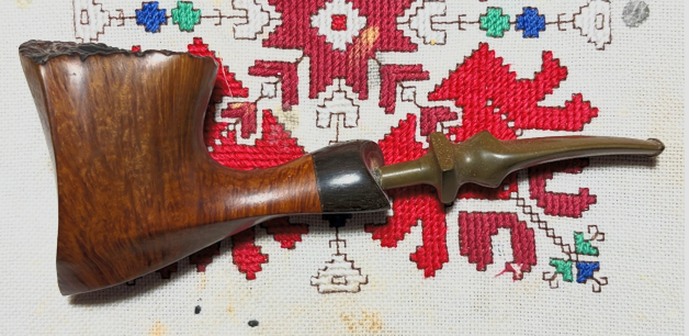 Preben Holm (1947 – 1989) has set some marks in pipe history. Just before his 16th birthday in 1963 he sold pipes to the legendary Pipe-Dan shop and at the age of only 22 he headed 45 employees. He was among the first Danish artisans who made “Danish pipe design” famous in the USA in the 1960’s. More than that he was one of the very first carvers who exceeded this moderate Danish Design which based on the classical shapes. “Chaising the grain” they turned out wild and dramatic fancy pipes. Combining smooth with blasted surfaces, showing big areas of the original bark at the top of the bowl and at the end of the stem, these pipes were quite shocking to many elder and more conservative pipe smokers.