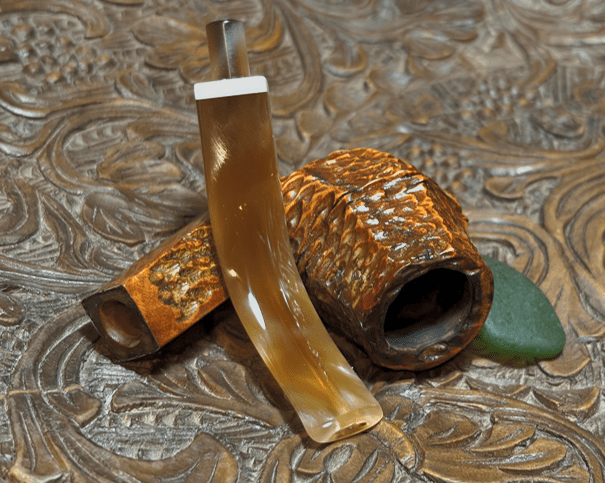 This Italian made Seahorse Rusticated Volcano gives off a rustic vibe. The Volcano is a unique shape and shows off well the Seahorse rustication. The panels of rusticated briar provide not only a tactile experience but also a nice visual. The marbled acrylic stem matches well the briar. The dimensions are Length: 6 inches, Height: 2 inches, Rim width: 1 1/8 inches, Chamber width: 3/4 inches, Chamber depth: 1 3/4 inches. Gary commissioned this pipe and will have the first opportunity to claim him from the Pipe Store. A portion of all the proceeds go to help support the Daughters of Bulgaria (now called, Spring of Hope) – helping trafficked and sexually exploited women and girls. Thanks for joining me!