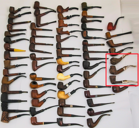 The next pipe on the worktable came to me in February 2019 in what I call the Lot of 68 from a seller in West Hartford, Connecticut. This lot has produced a trove of treasures for the For “Pipe Dreamers” ONLY! online collection where pipemen and women commission pipes that whisper their names. The Rusticated Volcano now on the table is the last of 3 that came from the same Italian unbranded collection which are marked in the photo from the West Hartford seller. The other two have found homes with new stewards and pipeman Gary from Four Oaks, North Carolina, has commissioned the third. Gary’s Volcano is between the other two.