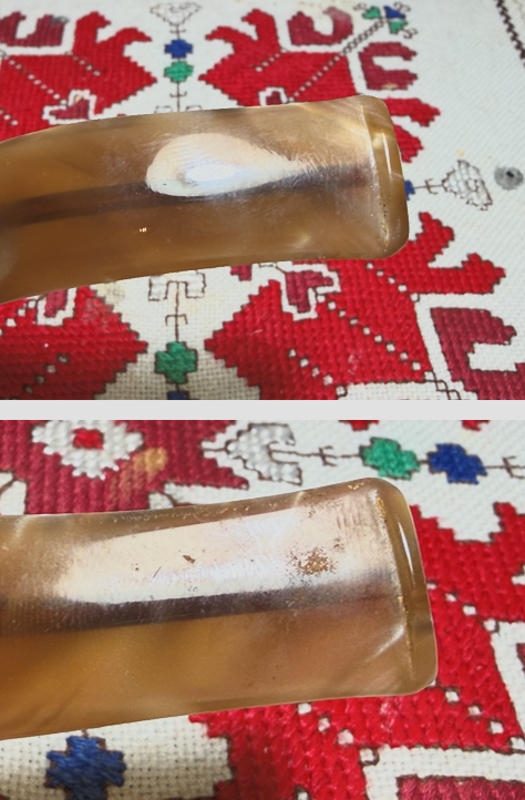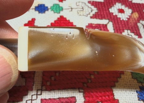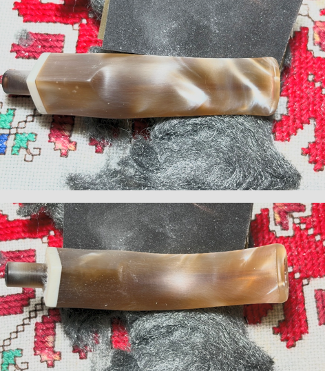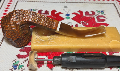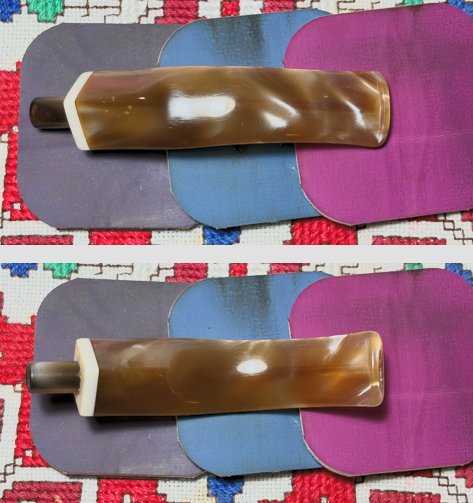Turning again to the stem, there are some blemishes on the acrylic surface. The cleaning erased much of what I saw earlier as tooth chatter. The upper and lower bit look good and simple light sanding is all that will be needed.