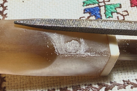 After the patch was fully cured, the patch mound was filed down with a needle file bringing the patch flush with the acrylic surface.
