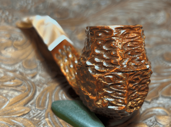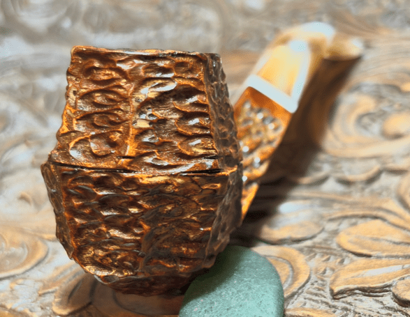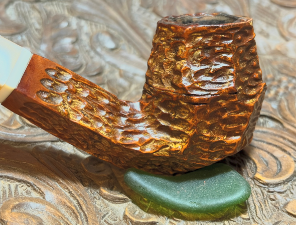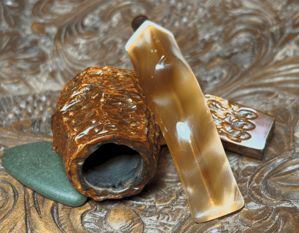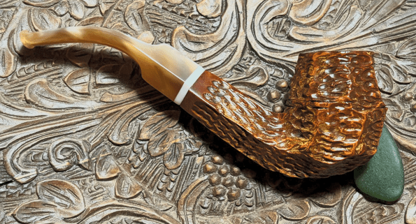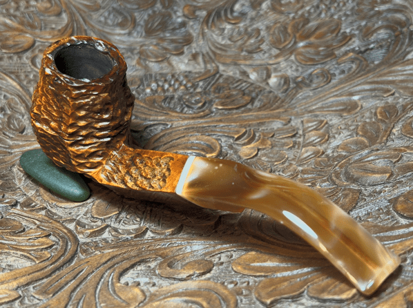 This Italian made Seahorse Rusticated Volcano gives off a rustic vibe. The Volcano is a unique shape and shows off well the Seahorse rustication. The panels of rusticated briar provide not only a tactile experience but also a nice visual. The marbled acrylic stem matches well the briar. The dimensions are Length: 6 inches, Height: 2 inches, Rim width: 1 1/8 inches, Chamber width: 3/4 inches, Chamber depth: 1 3/4 inches. Gary commissioned this pipe and will have the first opportunity to claim him from the Pipe Store. A portion of all the proceeds go to help support the Daughters of Bulgaria (now called, Spring of Hope) – helping trafficked and sexually exploited women and girls. Thanks for joining me!