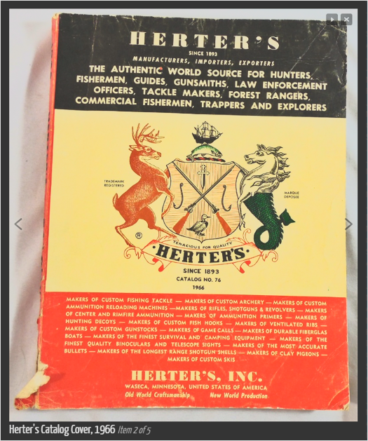 The owner, George Herter, produced catalogs that advertised a wide variety of gun, hunting, camping and fishing supplies. Herter was a master pitchman. He wrote all the copy for the catalog, some over 700 pages, claiming the superiority of Herter’s products over products sold by his competitors. His products, he bragged, were “actually made far better than is necessary.”