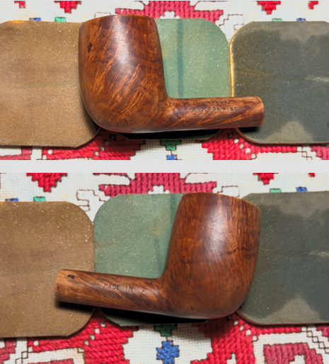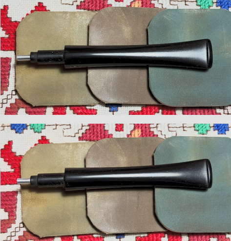 Next, the full set of 9 micromesh pads is used to sand/polish the stummel. Between each pad the stummel is wiped with a moist cloth to remove the accumulated dust and to improve the traction of the next pad. The first set of 3 pads are grades 1500, 1800 and 2400.