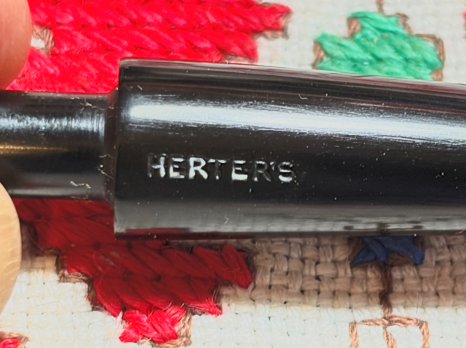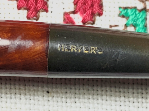 The nomenclature is stamped on the shank. On the left shank flank is stamped: HERTER’S [over] ANGLERS PIPE.