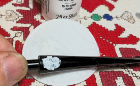 After drying, the side of a toothpick is used to scrape the excess paint off the logo. The form of the logo is nice and deep. The paint adheres to the logo nicely.