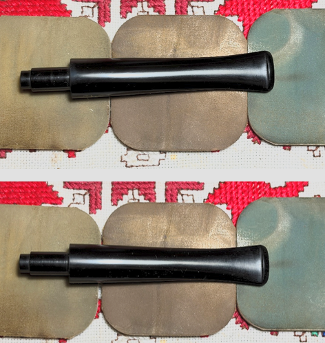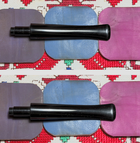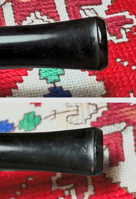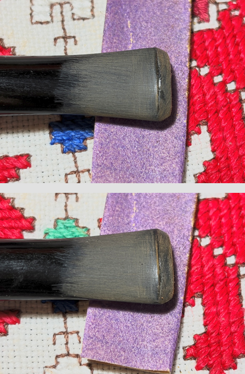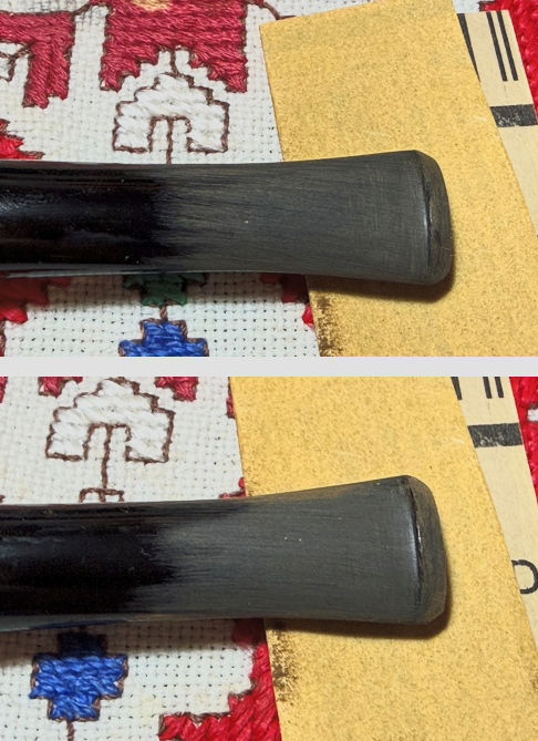 I like how the bevel looks. There’s still some darkened briar shown in the second photo, but I’m hopeful that this should not be noticed at all after the rim is touched up.