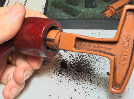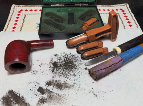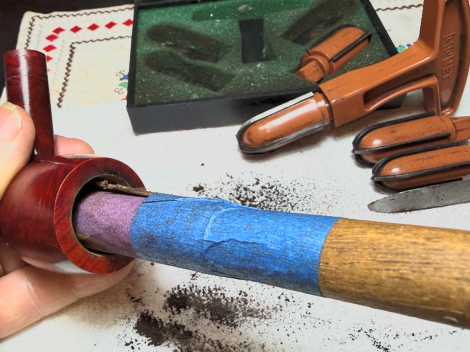 Turning now to the stummel, the chamber is reamed to remove the very light carbon cake.