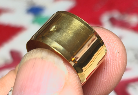 I haven’t forgotten the gold band! Buffing it with compound should remove very small scratching and raise the ‘bling factor’ of the band.