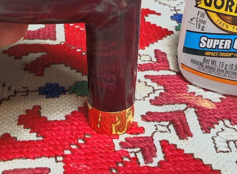 To remount the band, a small amount of regular CA glue is placed on the end of a toothpick. The glue is then spread around the inside, middle of the band. Not much glue is used, and it’s spread in the middle so that when mounted, glue is not squeezed out.