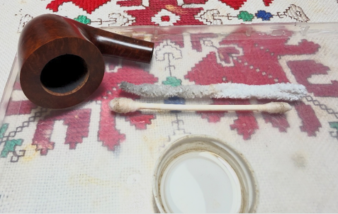 Now, I’m fully convinced that this pipe has never been smoked. A single cotton bud and pipe cleaner with isopropyl 99% alcohol are used to confirm that the internals are good to go.