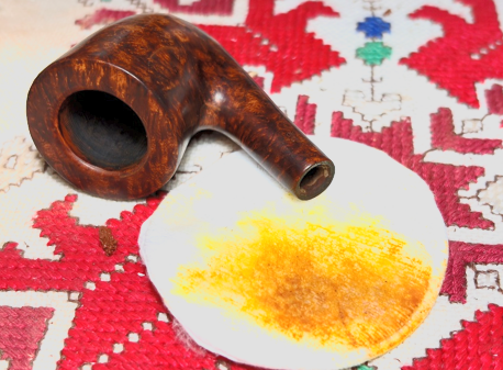 Transitioning to cleaning the external briar, undiluted Murphy Oil Soap is used with a cotton pad. The briar is pretty clean.