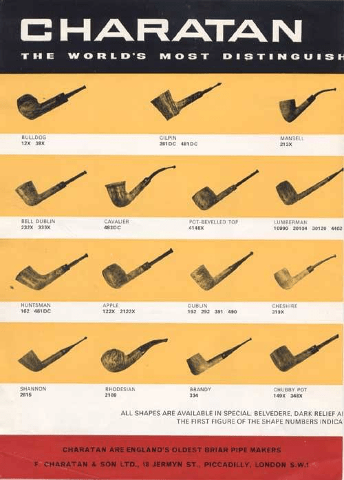 Looking more closely at the shape number, the 381DC is described in period Charatan catalogs as a ‘Gilpin’. The undated brochure below shows the 381DC (courtesy of Doug Valitchka, Charatan – Pipedia). I would normally designate this shape as a Poker, but in the Lane production, this pipe is called a Gilpin.