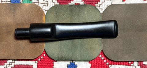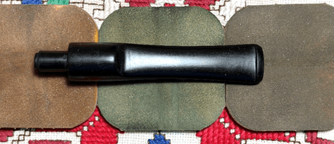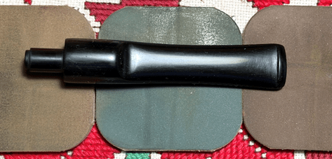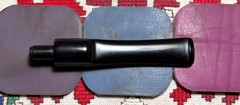 Applying micromesh pads comes next. To guard the vulcanite rubber from oxidation and to condition the stem, between each pad Obsidian Oil is applied to the stem. The first set of pads are grades 1500, 1800, and 2400.