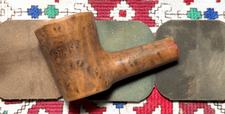 Following the sponges, the stummel is sanded with micromesh pads. Between each pad, the stummel is wiped with a moist cloth to remove the dust and to improve the traction of the following pad. The first set of 3 pads are grades 1500, 1800 and 2400.
